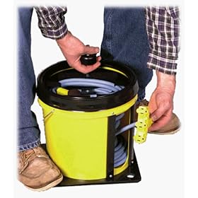 Product Description From the Manufacturer Here is a simple, inexpensive way to eliminate tangled cords, reduce work-site hazards and save time and money! Easily winds power cords, coaxial cable, air hose and rope. Versatile - hand carry or mount to walls, decks, etc. It's rugged, durable and very efficient. Compatible with other Pail organizing Products. Stackable for convenient storage and comes in 3 convenient sizes. Holds 50 feet of 5/8-inch, 100 feet of 1/2-inch, 125 feet of 3/8-inch, 150 feet of 5/16-inch and 500 feet of 1/4-inch outside diameter material. Cord not included.