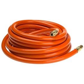 For top performance in all temperatures, GoodYear air hoses stand alone! GoodYear's 046 3/8-Inch-by-25-Foot Safety Orange Pliovic Industrial Hose will deliver long- lasting and oil-resistant dependability. Can be used for all lines, air tools, and accessories. Includes male brass ferrules and barbed